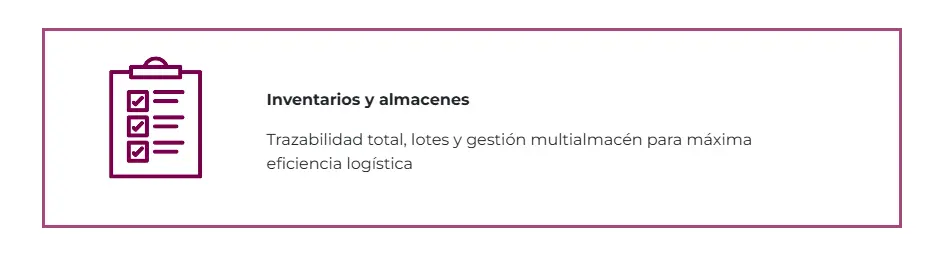 Gestión de stock en tiempo real, trazabilidad completa y planificación automática de compras y almacenes.