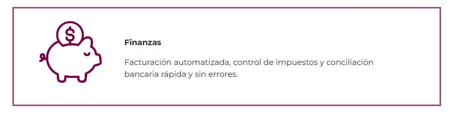 Conecta las diferentes áreas de tu negocio en una sola herramienta: ventas, finanzas, inventario, recursos humanos, proyectos y mucho más.