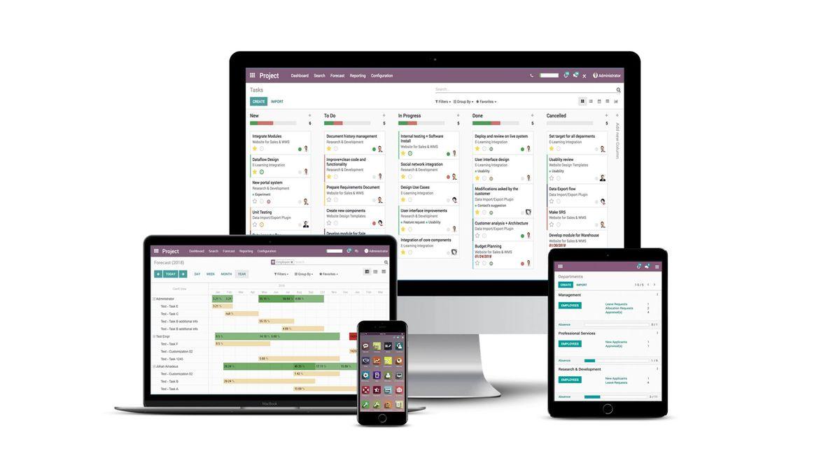 Odoo es un software de gestión empresarial todo-en-uno que conceta en un mismo sistema todas las áreas de tu negocio: ventas, compras,facturación, contabilidad, inventario, recursos humanos, marketing y más.